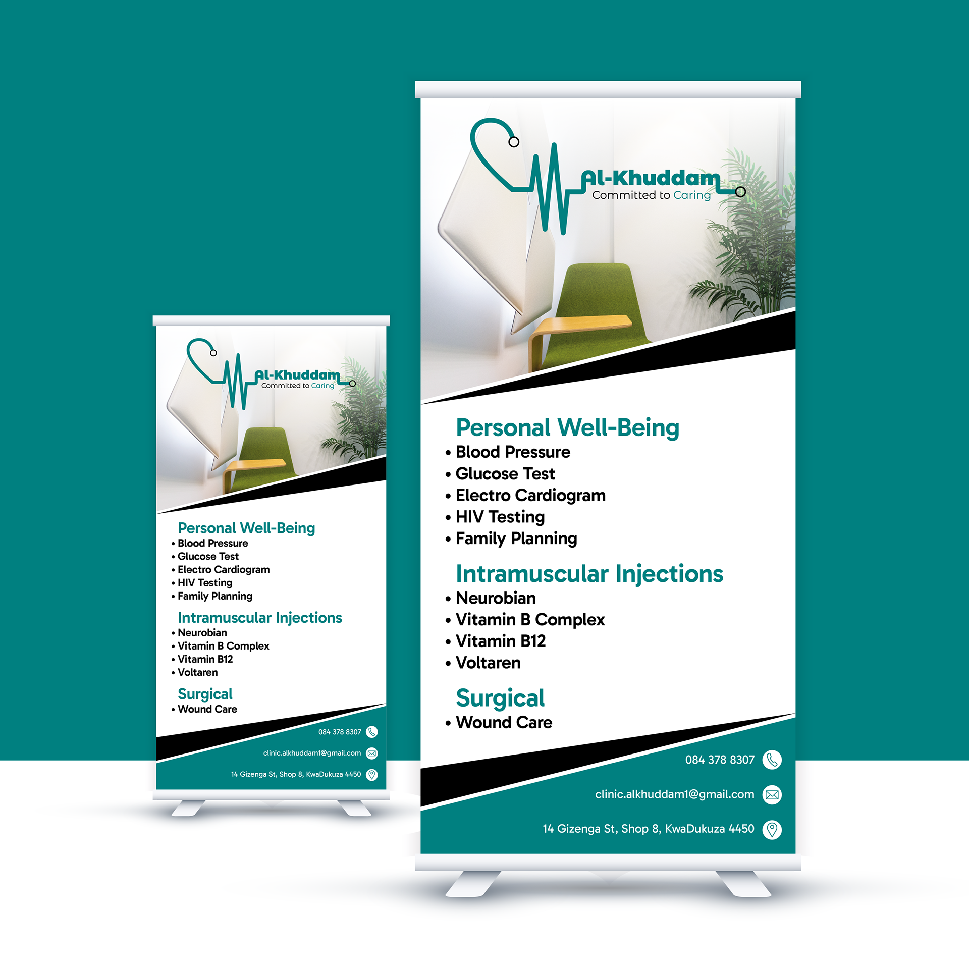 For Al Khuddam Frail Care Centre, I developed a comprehensive branding solution that included the design of their logo, an Arabic version of the logo, pull-up banners, and a professional letterhead for official documentation. The aim was to establish a visual identity that embodies the centre’s core values of compassion, dignity, and trust. The logo was crafted to be clean, professional, and approachable, with an Arabic adaptation to ensure cultural relevance and inclusivity. Pull-up banners were designed to be both informative and visually impactful, promoting the centre’s services with clarity and warmth. Additionally, the letterhead was designed to align seamlessly with the overall brand identity, ensuring consistency across all formal communications.