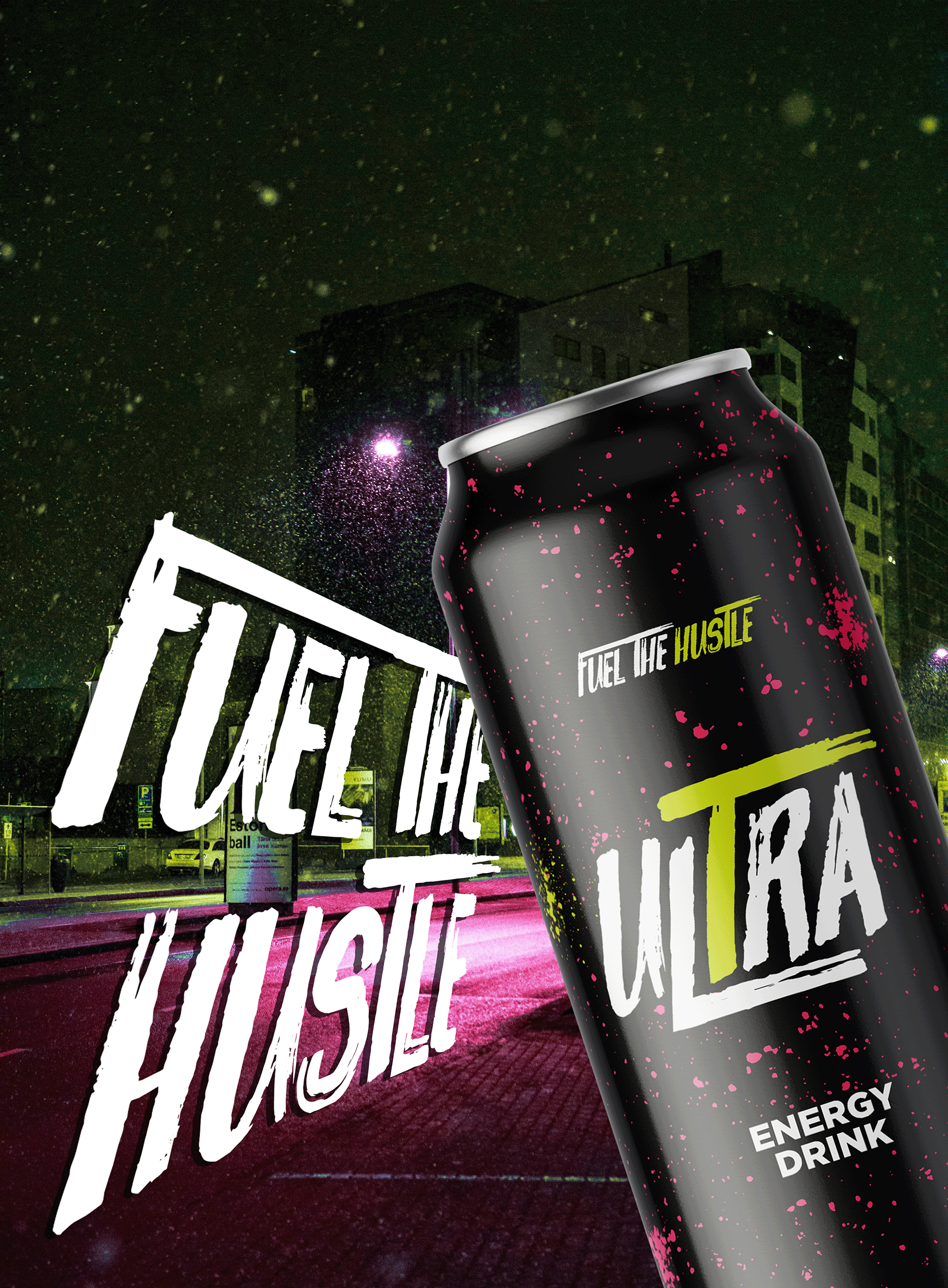 ULTRA is a bold, urban-inspired energy drink concept created to capture the raw energy and edge of street culture. Designed with a gritty, rebellious aesthetic, the brand blends dark tones with neon accents, graffiti-style typography, and dynamic visual elements like spray paint textures and bold strokes. This concept explores how product design can channel attitude and identity, reflecting a lifestyle of non-stop motion, self-expression, and unapologetic confidence. It’s not just a can -